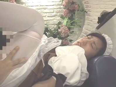 清楚系の19歳メイド喫茶店員が断れないのを漬け込まれ押し倒されハメられる